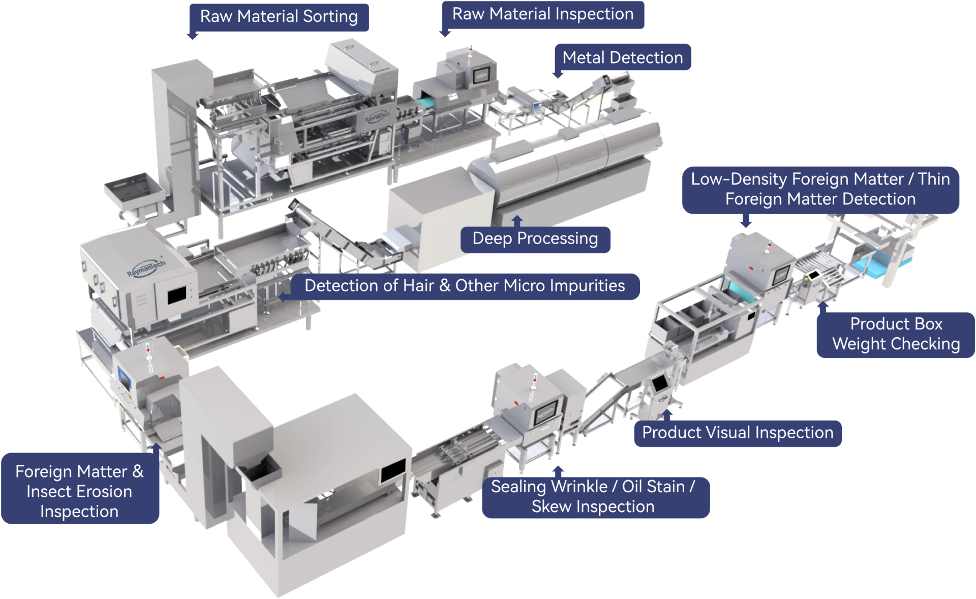 bietet eine ganzheitliche Lösung für die gesamte Prozesskette – von der Rohwareninspektion über die Prozessinspektion bis hin zur Inspektion nach der Verpackung.